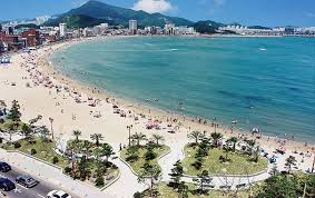 Busan is a seaport surrounded by several beaches. The most beautiful of them is the Haeundae-beach. It is well worth visiting in the summer as well as the winter. During wintertime, it is a beautiful place to go for a walk, with packs of seagulls overhead. The beach is busy year round with several kinds of beach festivals and visitors from in and out from the country. Dongbaekseom (Dongbaek Island), located at the south end of the beach, offers a view of the sea by car and its coastline is famous for fishing. Haeundae beach is one of the most popular spots in Busan to view the first sunrise of the year on January 1, with around a thousand gathering before dawn.